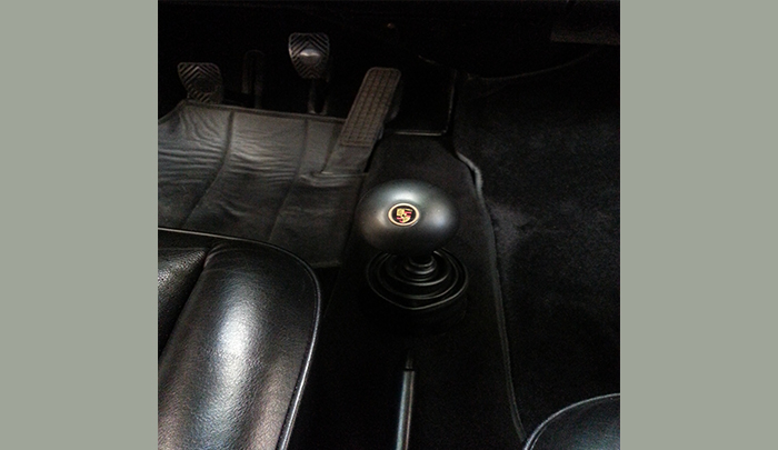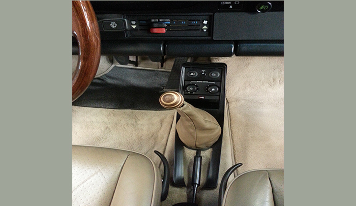 We modified the center console. We removed the upholstery and framing leaving only the plastic base. We then cut out the area under the e-brake handle.